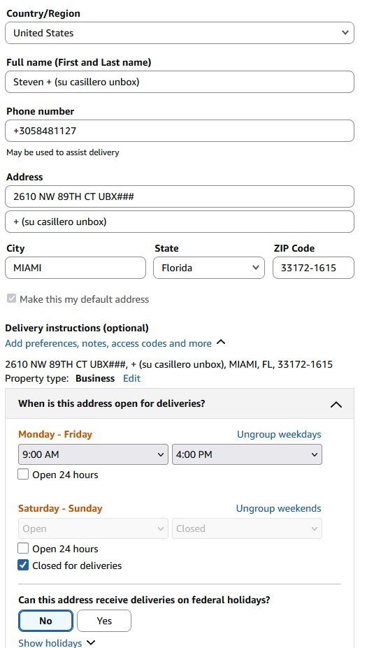 DIRECCION DE ENVIO EN MIAMI – CASILLERO